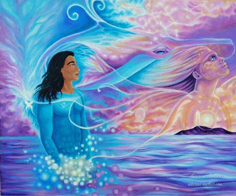 La peinture que je te propose n'a pas pour but d'usurper ta propre reconnexion à ton Essence. En aucun cas je ne viens faire le travail à ta place. Tu peux plutôt me voir comme un pont ou un soutien jusqu'à ton Essence, l'espace de la réalisation d'une peinture, afin de favoriser ta propre reconnexion. Lorsque tu recevras le tableau, c'est toi qui décideras si oui ou non tu souhaites te rencontrer pleinement. C'est toi et toi seul.e qui détermineras le rythme de cette rencontre profonde avec toi-même. Je ne fais que me connecter de cœur à cœur et te transmettre image, perceptions et messages.
